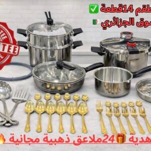 طقم مطبخ فاخر 14 قطعة + 🎁 هدية 24 ملعقة ذهبية ✨ إذا كنتي تحوسي على الجودة + الأناقة +