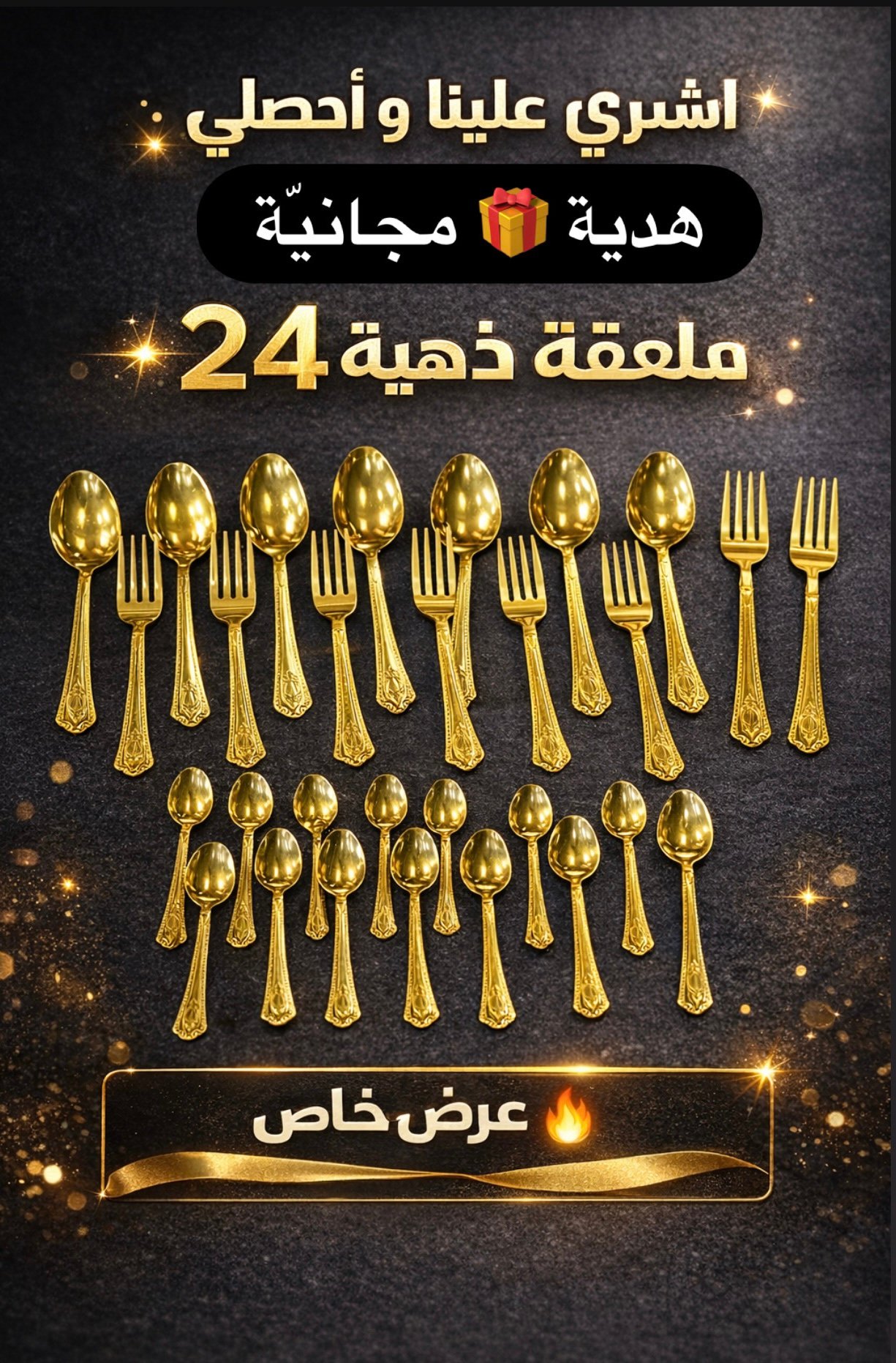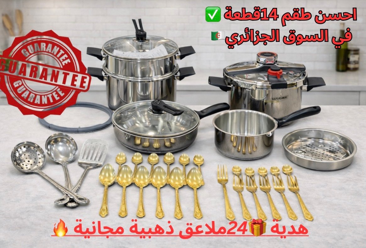 طقم مطبخ فاخر 14 قطعة + 🎁 هدية 24 ملعقة ذهبية