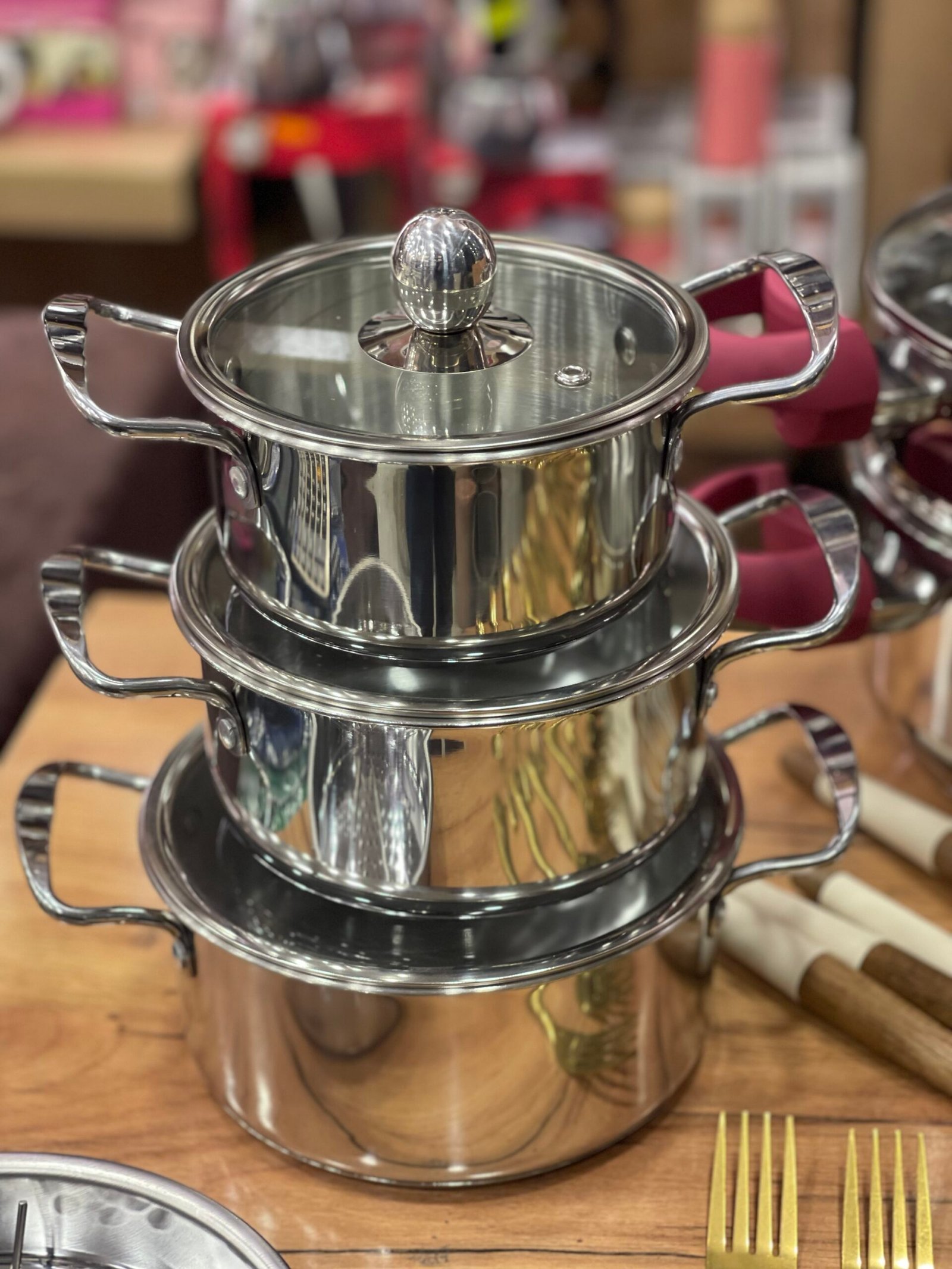 3قدور بأحجام مختلفة مع أغطية