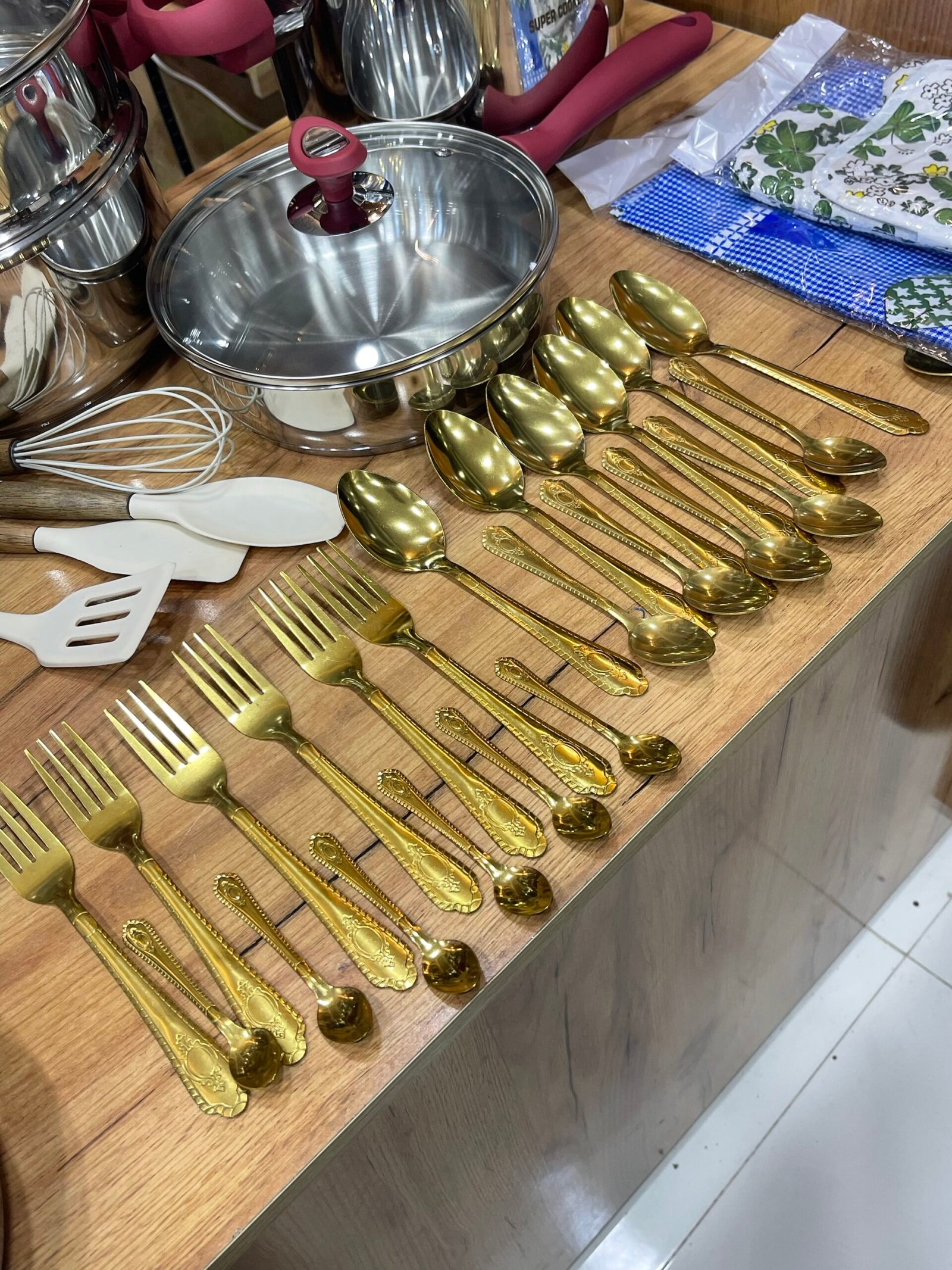 طقم ملاعق وشوك ذهبية ✨