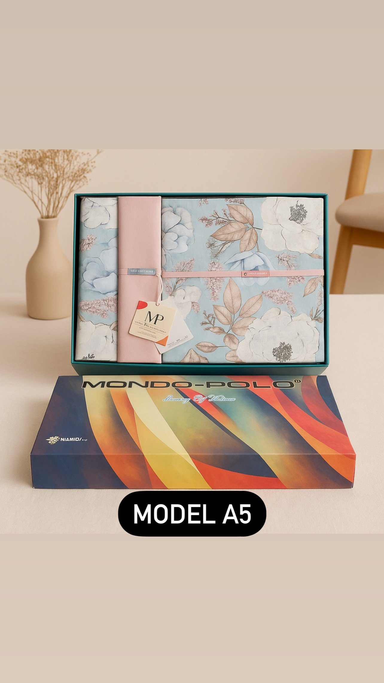 طقم دراب عالي الجودة من علامة Mondo Polo، مصنوع من كتان بلي قطن، يمنحك نعومة وراحة قصوى مع تصميم أنيق وضمان الجودة.