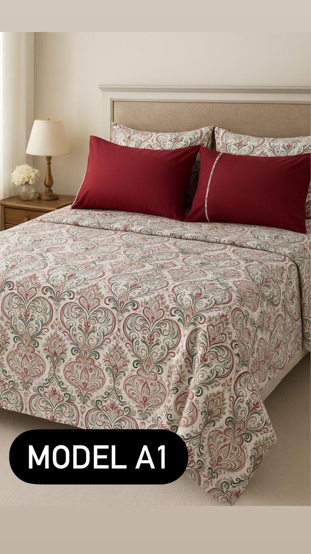 🛏 4 مخاد (70×50 سم): لتكميل المظهر الراقي وتوفير راحة أكبر للنوم.