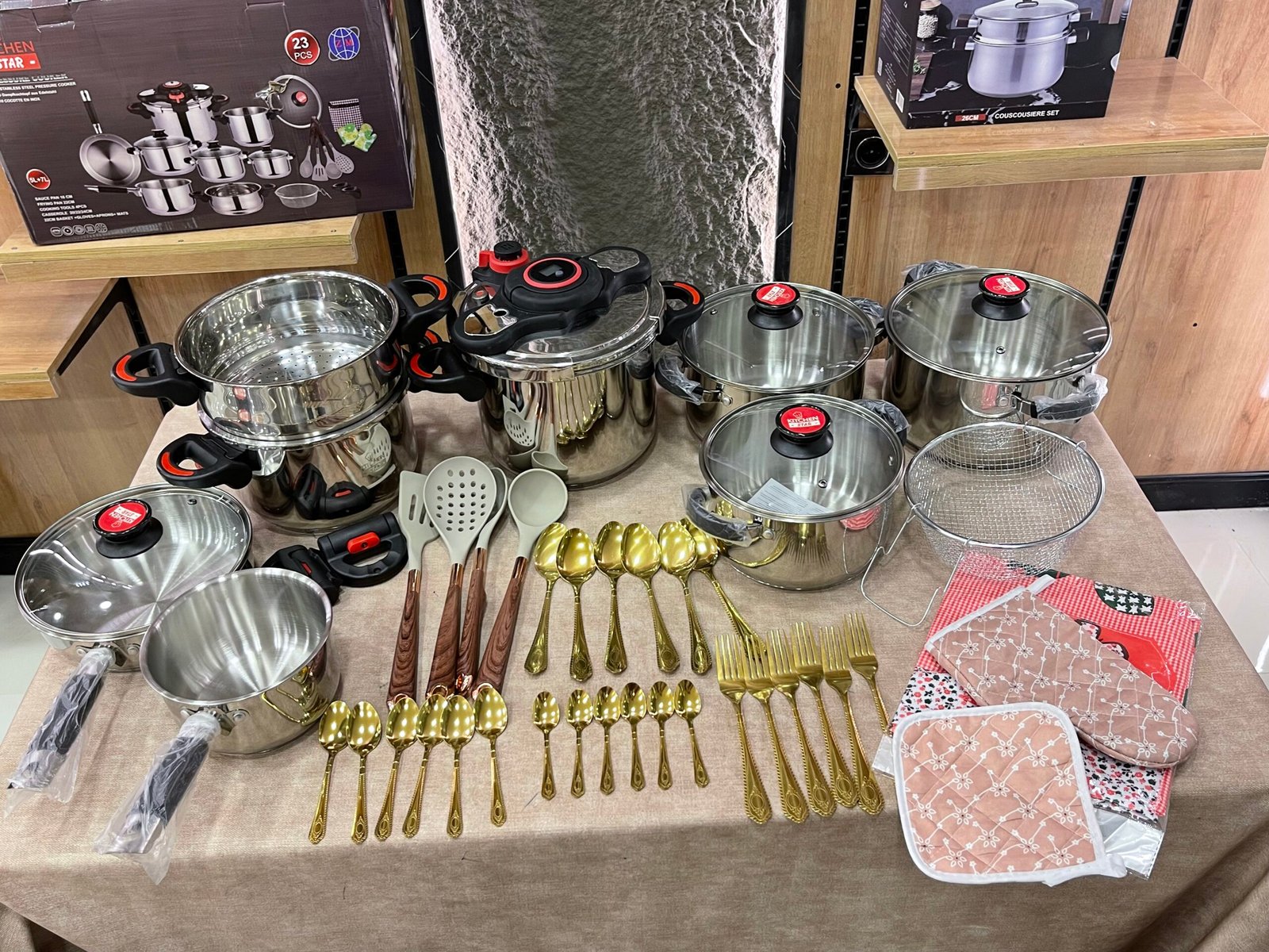 كل ما تحتاجه مطبخك… في طقم واحد متكامل حوّل مطبخك إلى مساحة عملية وأنيقة مع طقم أواني الطبخ الفاخر 23 قطعة، المصمم خصيصًا لراحة العائلة الجزائرية ولمحبي الطبخ اليومي والولائم ![]()